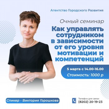 5 марта в Агентстве Городского Развития пройдет семинар «Как управлять сотрудником в зависимости от его уровня мотивации и компетенций».