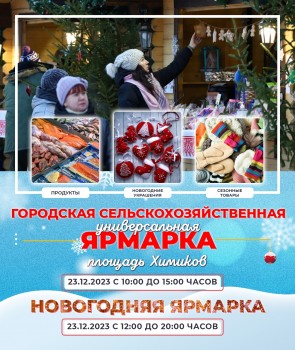 Чтобы новогодний стол был самым вкусным, а гостям понравились подарки - в Череповце 23 декабря на площади Химиков с 10.00 до 15.00. пройдет сельскохозяйственная универсальная ярмарка!