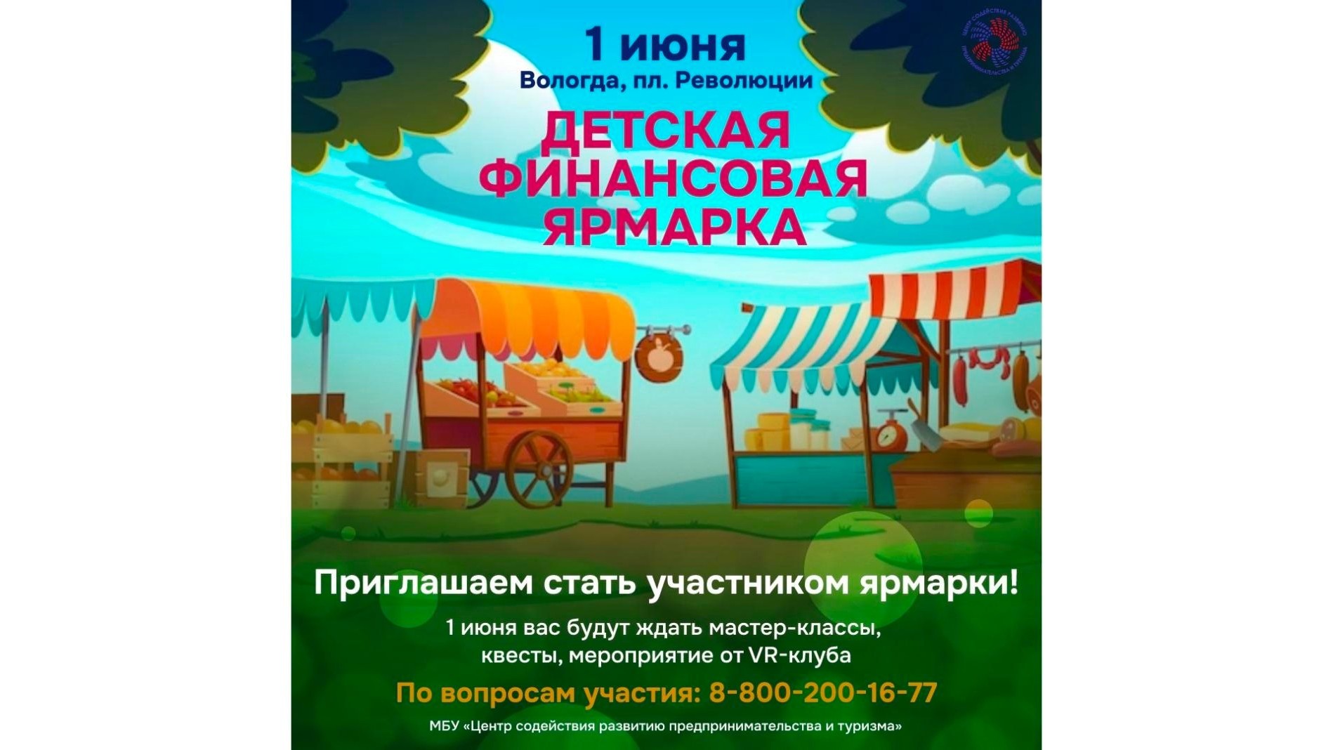 1 июня в Вологде пройдет универсальная ярмарка «День защиты детей», в которой примут участие юные вологжане и предприниматели Вологды.