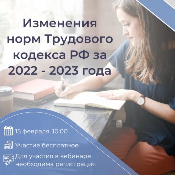 15 февраля в онлайн-формате Агентство Городского Развития совместно с Центром занятости населения проведет бизнес-час на тему «Изменения норм Трудового кодекса РФ за 2022 - 2023 года».