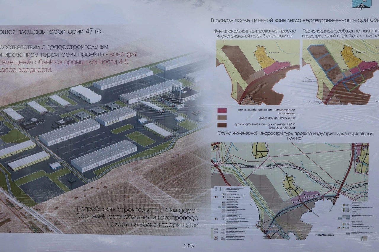 Схема парка «Ясная поляна» – это производственные площади с необходимой инфраструктурой для развития современных производств. В настоящее время пакет документов территориального планирования готов, мы разрабатываем мастер-план для предоставления заявки в Минпромторг для получения соответствующего статуса. Интерес у потенциальных инвесторов большой. Сюда уже готовы зайти предприятия машиностроения, домостроения и обработки пластмасс, - пояснила заместитель руководителя администрации Череповецкого района Светлана Астахова.В ходе рабочего визита в район Дмитрий Горбачев встретился с бизнесом в формате «разговора без галстуков», где обсудили узкие места по конкретным проектам и по общим вопросам, сдерживающим развитие района.