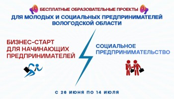 С 26 июня по 14 июля 2023 года в Вологодской области пройдет две федеральные программы «Социальное предпринимательство» и «Бизнес-старт для начинающих предпринимателей»,