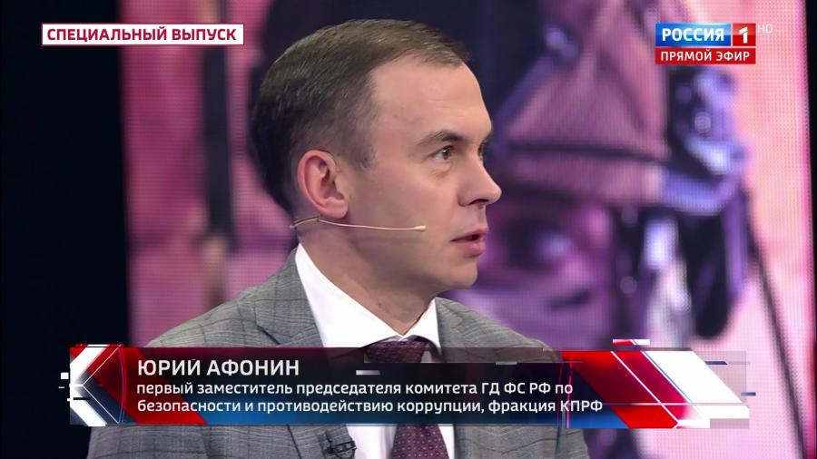 Первый заместитель Председателя ЦК КПРФ Ю.В. Афонин принял участие в программе «60 минут» на телеканале «Россия-1».