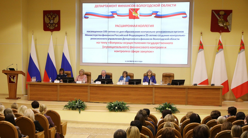 Расширенное заседание коллегии Департамента финансов области было посвящено вопросам осуществления государственного финансового контроля и контроля в сфере закупок и приурочено к 100-летию создания контрольно-ревизионных органов Министерства финансов России и 25-летию контрольно-ревизионного управления Департамента финансов области.