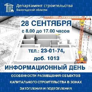 28 сентября в Департаменте строительства области состоится информационный день по теме "Особенности размещения объектов капитального строительства в зонах затопления и подтопления".