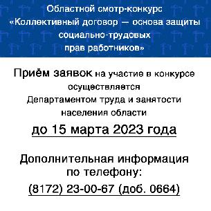На территории Вологодской области объявлен областной смотр-конкурс «Коллективный договор — основа защиты социально-трудовых прав работников»,