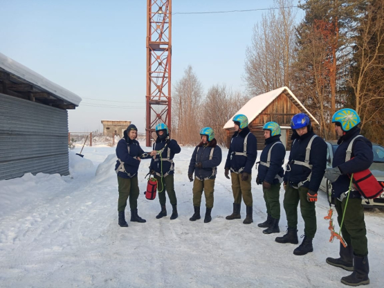 Специалисты отрабатывают порядок выхода и безопасного снижения из кабины с высоты 10 метров, используя новейшее оборудование - спусковое устройство КС-К.