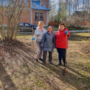 Дружный коллектив судебного участка Нюксенского района под лучами весеннего солнца убрал территорию у здания участка.