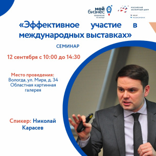 12 сентября в 10.00 Центр «Мой бизнес» Вологодской области приглашает предпринимателей на практический семинар «Эффективное участие в международных выставках».