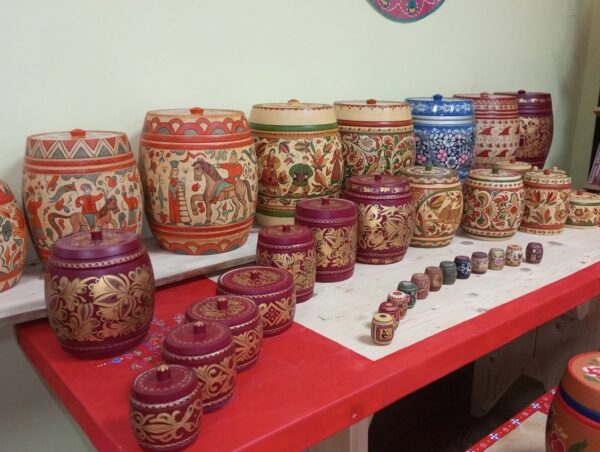 Посетителям передвижной выставки представлены более ста расписных изделий проекта. Это декоративные бочонки и ушатики, украшенные традиционными вологодскими росписями. Проект «Русский Север расписной» затрагивает несколько видов ремёсел: бондарное производство, токарное дело и роспись по дереву. Партнёром музея выступила фирма «Надежда», которая выпустила 130 заготовок – по 13 изделий на 10 видов росписи. Расписывают их вологодские мастера и представители других регионов. В коллекции музея уже есть бочата с уфтюжской, коробеечной, мезенской, верховажской, гаютинской росписями, а также с шекснинской золочёнкой и великоустюгским узорочьем. Ещё два комплекта изделий (с вологодской росписью по серебру и грязовецкой) находятся на стадии завершения и скоро пополнят коллекцию и завершат проект.