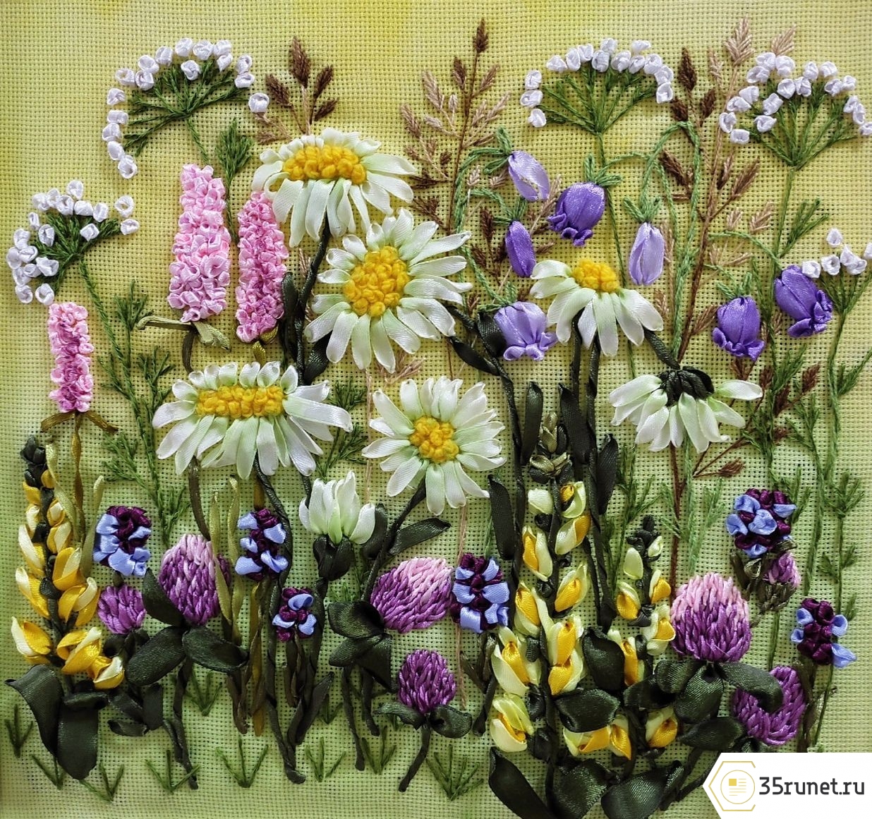 В семье Полянских рукоделие, вышивка шелковой гладью – семейная традиция. «Вышивкой увлекалась моя бабушка, от которой в наследство достались воспоминания о ручных работах на белье, скатертях, покрывалах, занавесках, скрашивавших скромный советский быт, да коллекция шелковых ниток еще довоенных времен, – рассказывает Ольга Полянская. – Сама я вышивала гладью еще в молодости, но лишь с выходом на пенсию появилось время и желание попробовать себя в чем-то новом. Случайно в интернете увидела красивое фото вышивки лентами, присмотрелась и решила рискнуть. Тонкости мастерства изучала на мастер-классах. Сюжеты придумываю сама, редко использую принты».