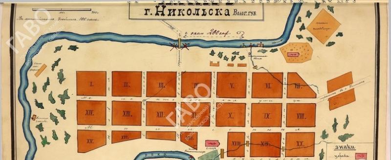 Со временем население Никольска увеличилось. В конце 19 века там проживало более 200 человек. Соответственно, город нужно было расширять. Сейчас мы можем увидеть план той самой застройки 1903 года, его опубликовал Государственный архив Вологодской области.