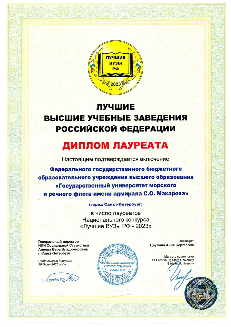 ГУМРФ имени адмирала С.О. Макарова был включён в список Лауреатов национального конкурса «Лучшие ВУЗы РФ-23».