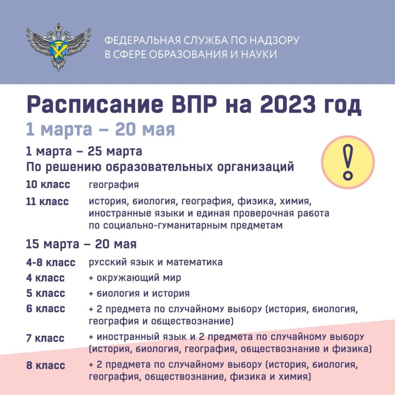 Рособрнадзор опубликовал расписание всероссийских проверочных работ на 2023 год.