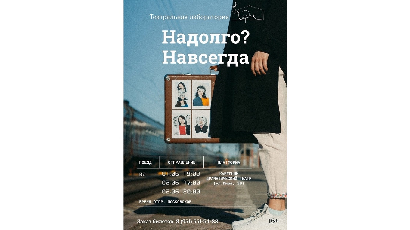 Спектакль «Надолго? Навсегда» пройдёт 1 июня в 19:00, 2 июня в 17:00 и 20:00 на сцене Камерного драматического театра.
