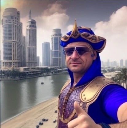 Скандальный депутат , который уже из-за поездки в ОАЭ лишился должности зампреда комитета по экономической политике и собственности, выложил фотографии на фоне небоскребов, сгенерированные нейросетью.