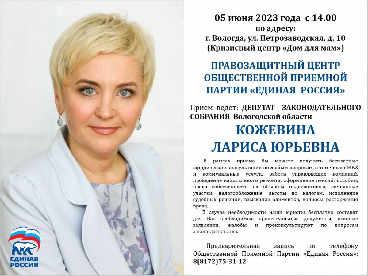 Лариса Кожевина 5 июня проведет выездной прием граждан в кризисном центре «Дом для мам» в Вологде