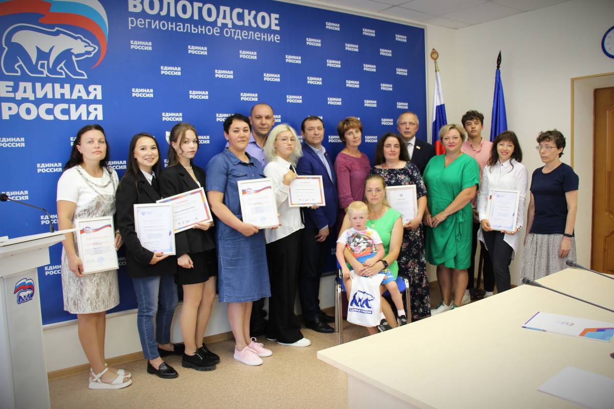 Родителям ребят за достойное воспитание ребенка, за достижение ими высоких результатов во Всероссийской акции проекта «Мира возможностей» в рамках Движения «Сделаем вместе» от имени секретаря Вологодского регионального отделения партии» Единая Россия» Андрея Луценко вручил благодарности.