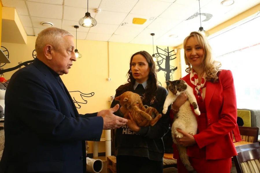 Москва, котокафе “Мурчашка”: Николай Харитонов и депутаты МГД от КПРФ Енгалычева и Янчук продвигают зоозащитную проблематику