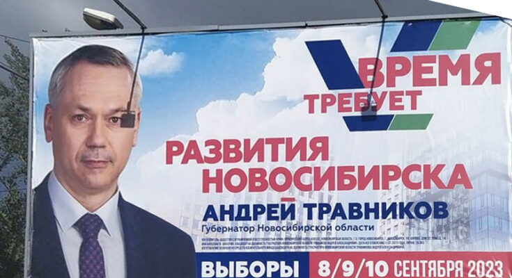 В Новосибирске развернулась губернаторская предвыборная кампания. Трудно пройти по городу, чтоб не увидеть несколько билбордов с лицом губернатора-единоросса Андрея Травникова и лозунгом «Время требует». На разных баннерах время требует разного. Чаще всего – «Развития Новосибирска», реже – «Чистого города», «Современного транспорта», «Новых дорог». За пределами Новосибирска время требует «развития» Бердска, Кольцово, Искитима и так далее – в зависимости от того, где именно размещен баннер. К сожалению, время не уточняет, от кого именно оно это требует и кто отвечает за то, что до сих пор этого нет. Возможно, лицо на агитации и выступает подсказкой ответа на все эти вопросы.