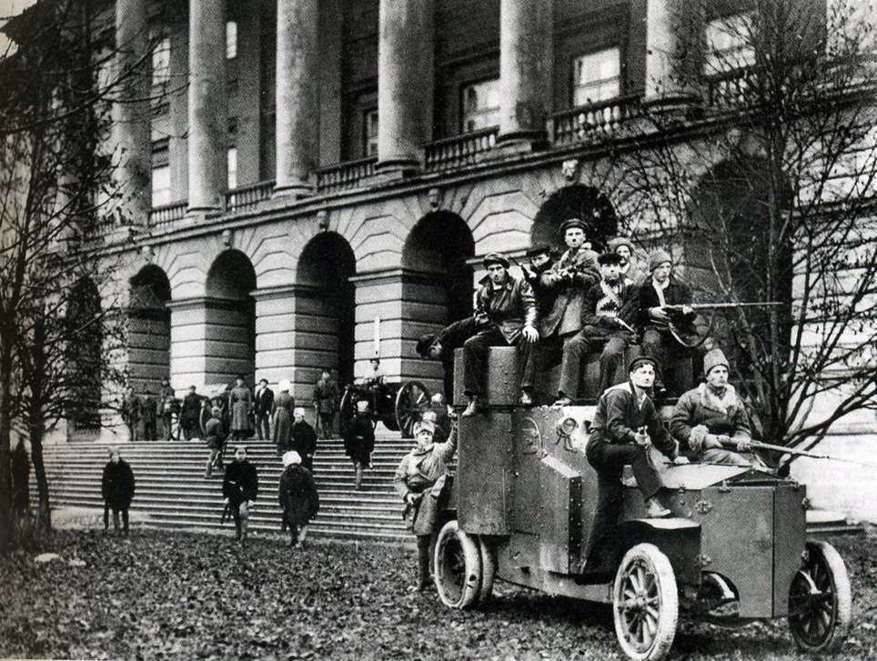 В очень похожей ситуации, только за минусом современных технологий, оказалось человечество к 17-му году прошлого столетия. В целом в истории человечества было множество несправедливостей. Я бы сказал, что почти вся история была несправедлива, люди это видели, пытались с разной степенью интенсивности и с переменным успехом протестовать и бороться, но после Первой мировой войны пружина сжалась совсем уж до предела. Миллионы и миллионы людей оказались втянутыми в войну, смысла которой они не понимали. На мой взгляд, это была бессмысленная бойня, наглядно описанная у Михаила Булгакова в романе «Бег»: «И вот они уже идут! Идут! Их тысячи, потом миллионы! Их головы запаяны в стальные шлемы. Они идут! Потом они бегут! Потом они бросаются с воем грудью на колючую проволоку! Почему они кинулись? Потому что где-то оскорбили божественный доллар!»