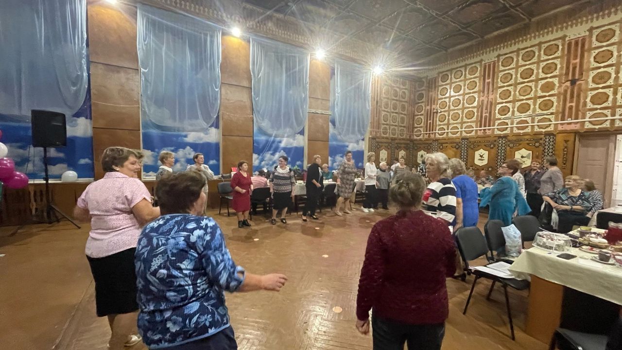 В этот праздничный день дружно пели песни, частушки, читали стихи, играли на гармошке и конечно танцевали под мелодии своей молодости.