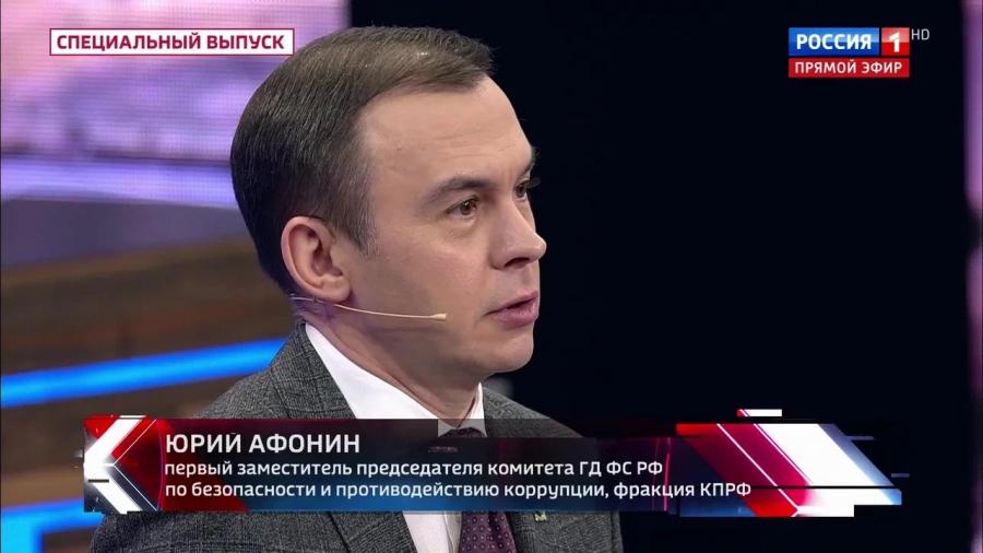 Первый заместитель Председателя ЦК КПРФ Ю. В. Афонин принял участие в программе «60 минут» на телеканале «Россия-1».