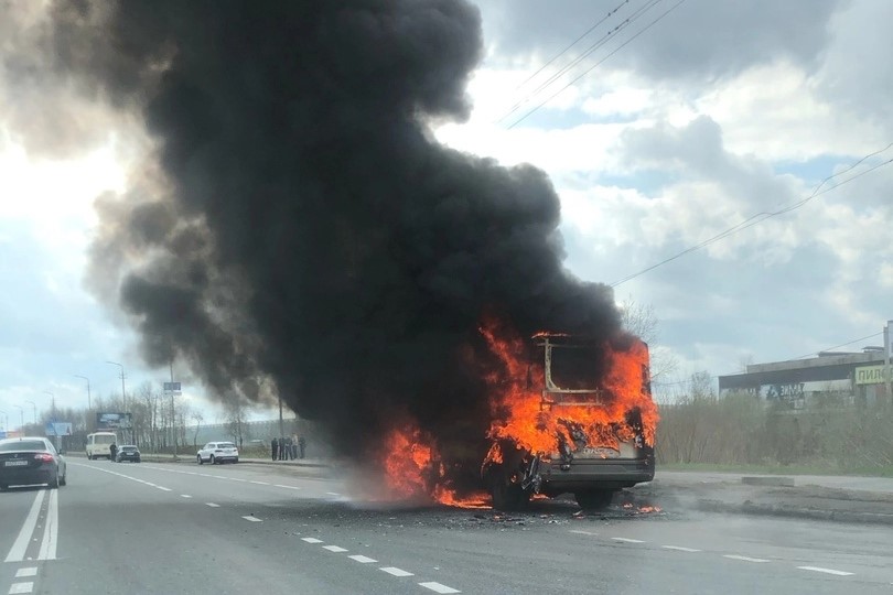 На Кирилловском шоссе загорелась маршрутка