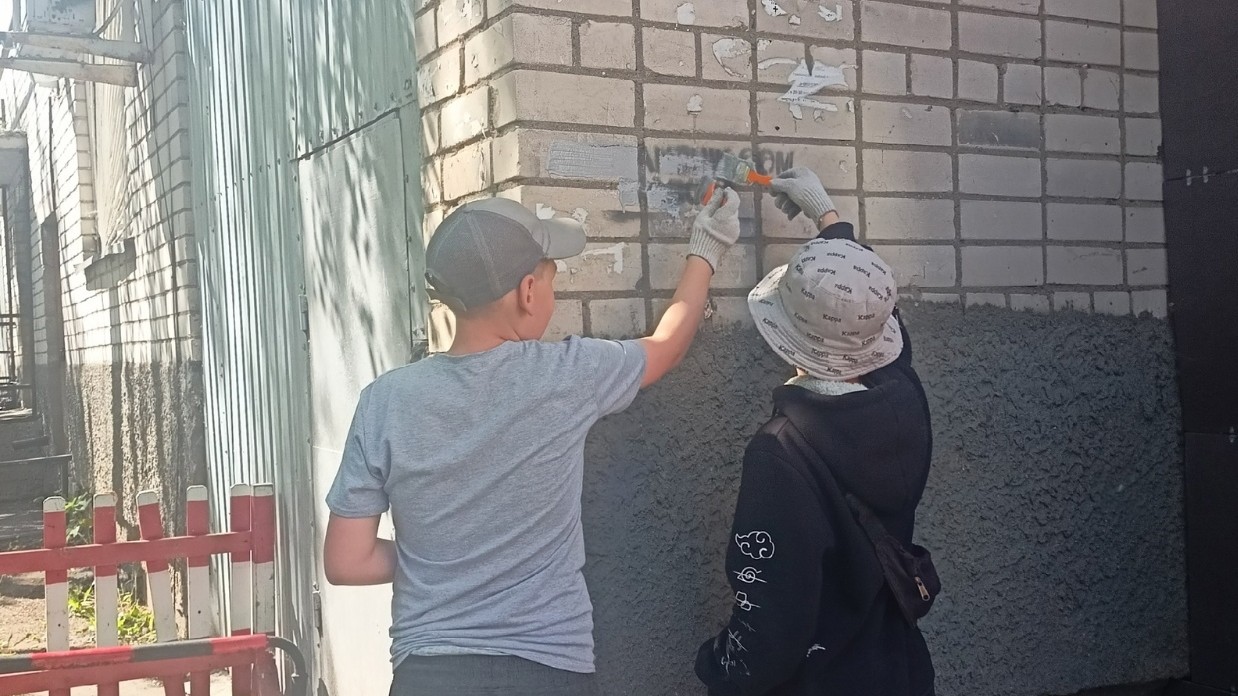 Вчера десять подростков из ТОС «Ковырино» поучаствовали в акции «Закрась опасность». Ребята убирали надписи наркотической направленности на фасадах зданий, а также на заборах частных секторов серой краской.
