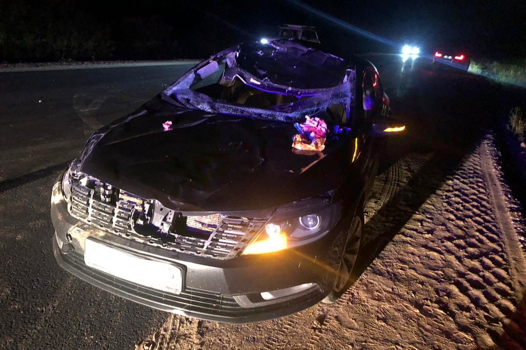 Водитель получил травмы, ему назначено амбулаторное лечение. Автомобиль поврежден, животное погибло, сообщает ГИБДД.