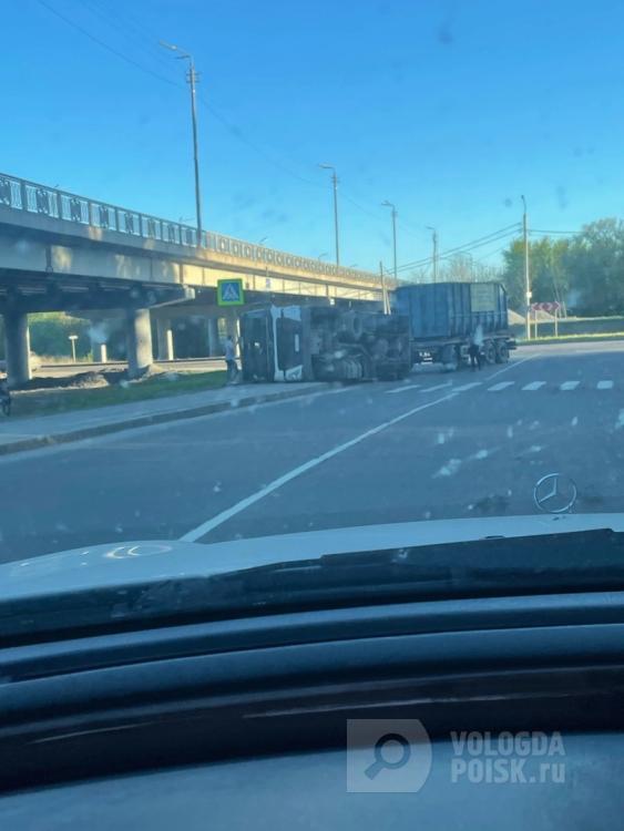 Серьезное ДТП случилось в Череповце сегодня днем: при движении в районе улицы Школьной, рядом с домом №1 перевернулся ломовоз.