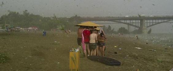 Это не шутка, а реальная ситуация в Череповце, где неожиданно в субботу днем случилось мини-торнадо на Зашекснинском пляже.