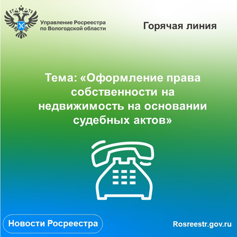 «Горячая» линия Вологодского Росреестра «Оформление права собственности на недвижимое имущество на основании решения суда»