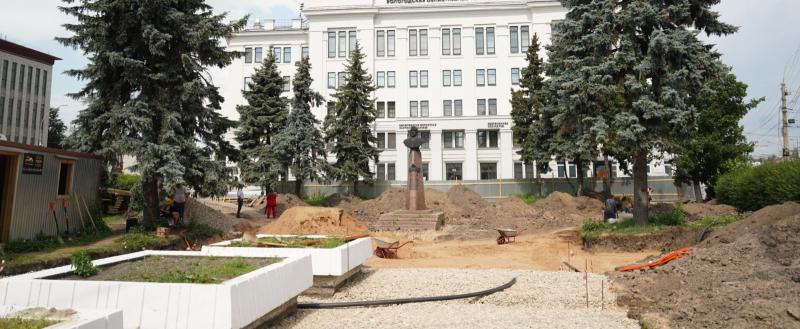 «В проект были внесены изменения в виде подсветки памятника. Считаю это очень важным моментом, потому что памятники должны выделяться в парках и скверах. Думаю, вологжанам такое решение понравится. Также мы решили убрать все воздушные линии в землю, заменить бетонную брусчатку на гранит и высадить шестиметровые голубые ели взамен старых. Работы проходят согласно графика. Сейчас завершают устройство инженерных коммуникаций. Идет подготовка основания, завозятся материалы. К 1 сентября сквер будет готов», – сказал исполняющий обязанности Мэра города Вологды Андрей Накрошаев.