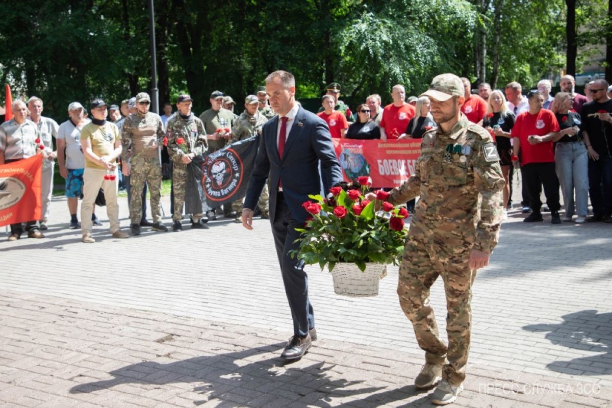 Участники митинга возложили цветы и венки к мемориалу в Октябрьском сквере, а члены «Боевого братства» провели церемонию награждения бойцов-защитников Родины.