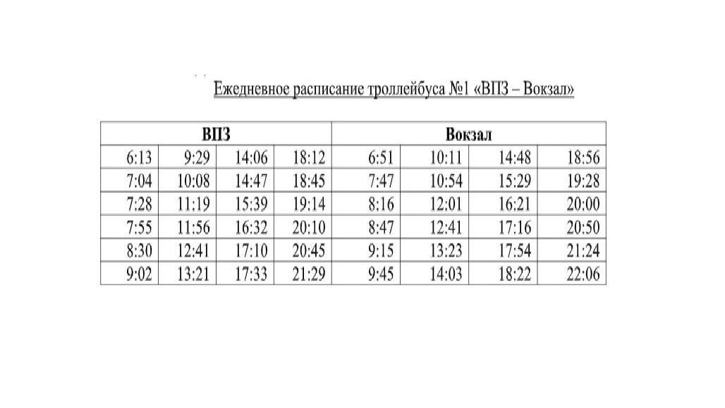 Стало известно расписание троллейбуса № 1 «ВПЗ — Вокзал»