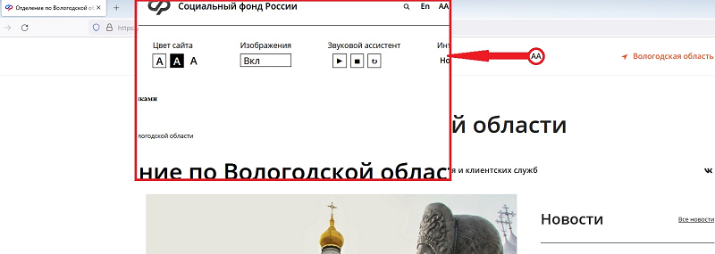 Вологжане со слабым зрением могут прослушать текстовые материалы о пенсиях и социальных выплатах на сайте Социального фонда России. Для этого работает сервис звукового ассистента, который интегрирован в версию сайта для слабовидящих. Напомним, данная версия отличается большей контрастностью и позволяет задавать удобные параметры отображения текста, фона страниц и размера шрифта.