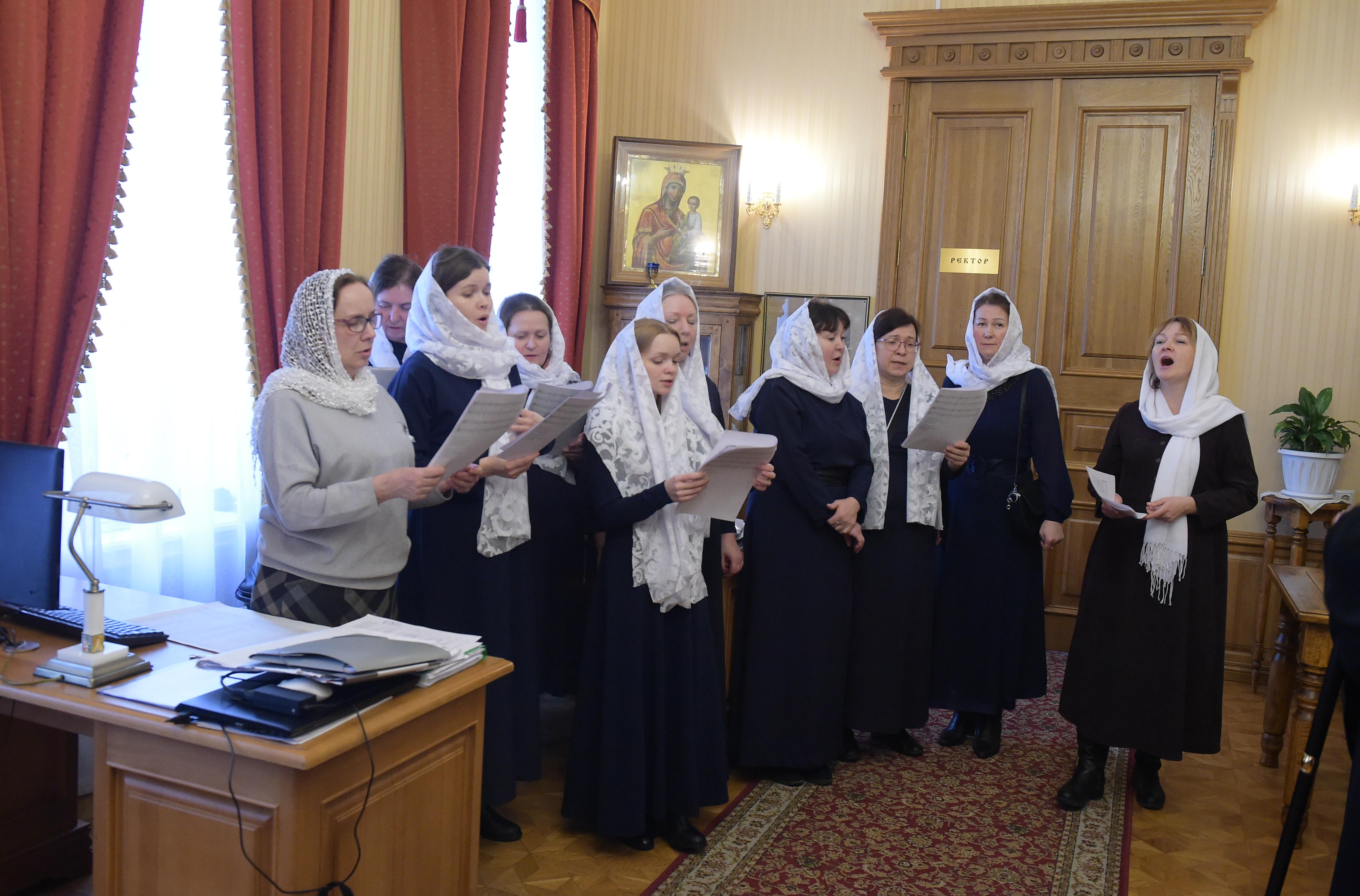 Хор регентского отделения семинарии под управлением заведующей отделением Светланы Валерьевны Гладковой исполнил рождественскую колядку «Добрый вечер тоби, пане господарю».