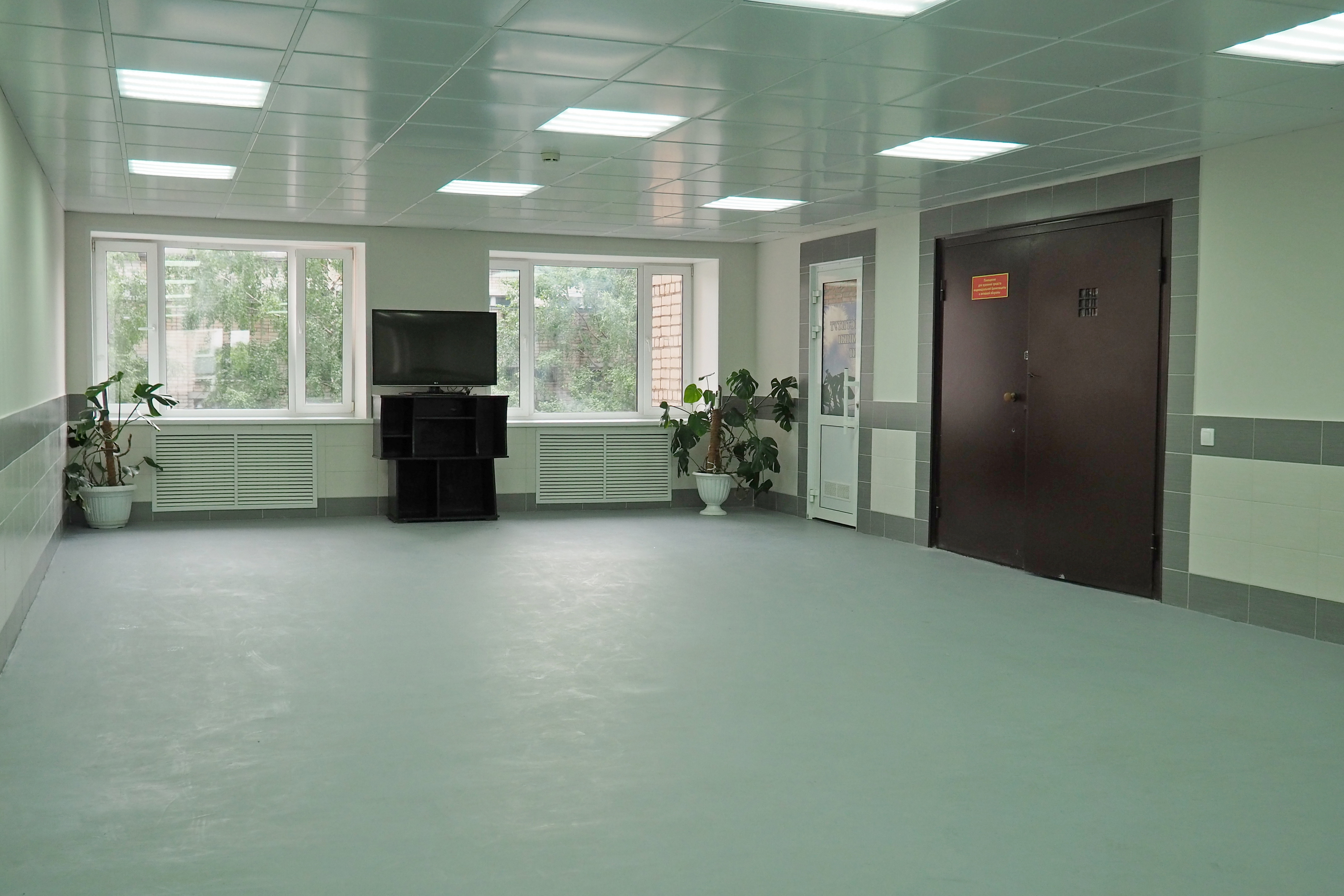 За время ремонта подрядчики произвели замену системы отопления. Обновленная электропроводка подключена к новым распределительным щиткам. Пол выровнен и покрыт износостойким полимерным составом, выполнена отделка стен, смонтированы натяжные потолки со встроенными светодиодными светильниками. В двух служебных туалетных комнатах установлены унитазы с инсталляцией, сенсорные умывальники и душевая кабинка. Цветовое оформление стен выполнено в светлых, мягких тонах.