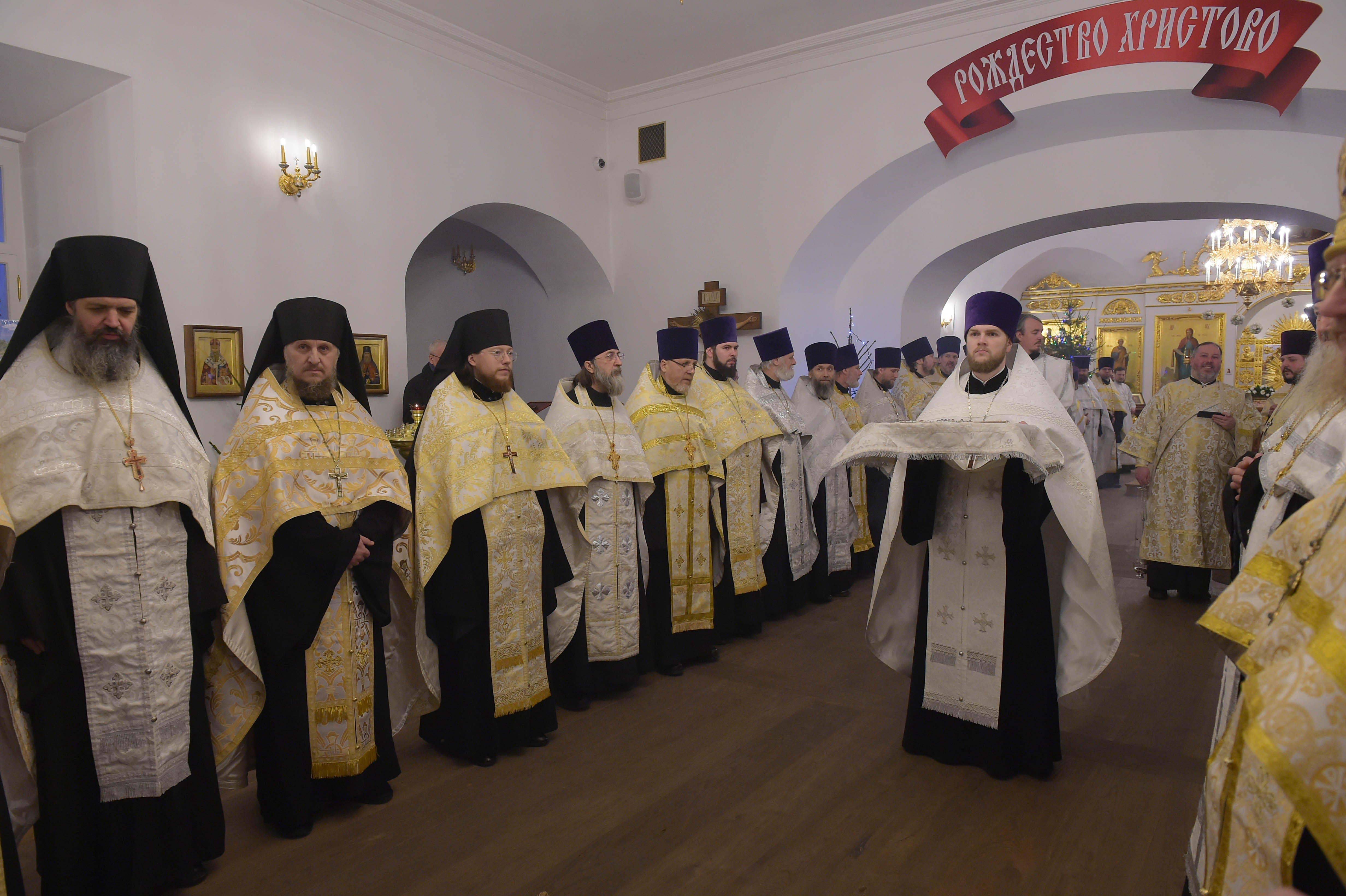 Традиционно за Рождественской вечерней собрались благочинные церковных округов Вологодской епархии, наместники монастырей и игумении обителей, настоятели приходов города Вологды.