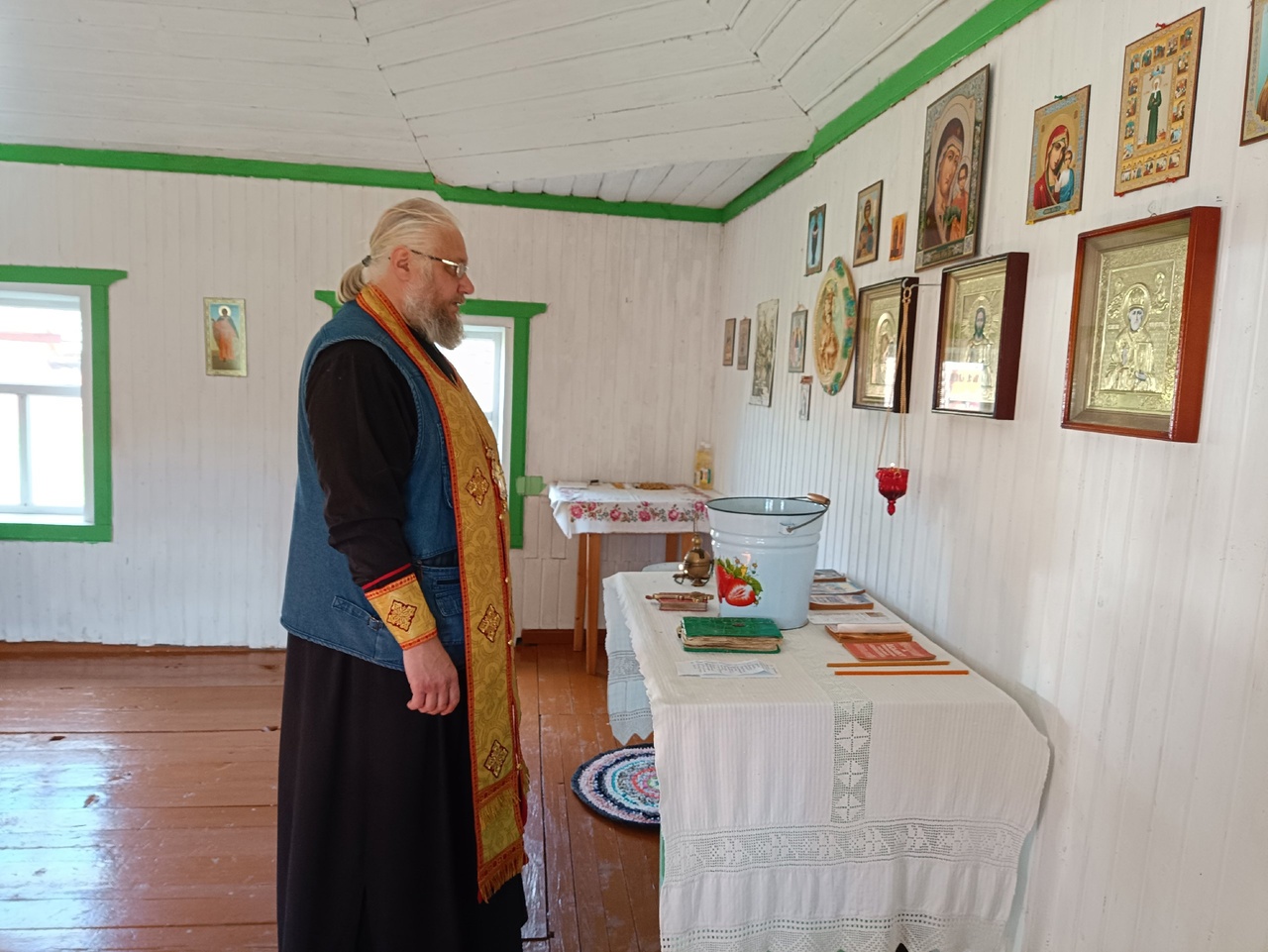 20 июля 2023 года протоиерей Михаил Никифоров отслужил водосвятный молебен на начало доброго дела в часовне святых преподобных Евфимия и Харитона Сянжемских д. Чаглотово.