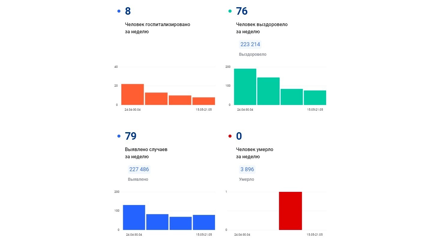 Федеральный портал «стопкоронавирус.рф» теперь публикует данные о ситуации с коронавирусом еженедельно. По их информации, в период с 15 по 21 мая в Вологодской области вирус выявили у 79 человек.