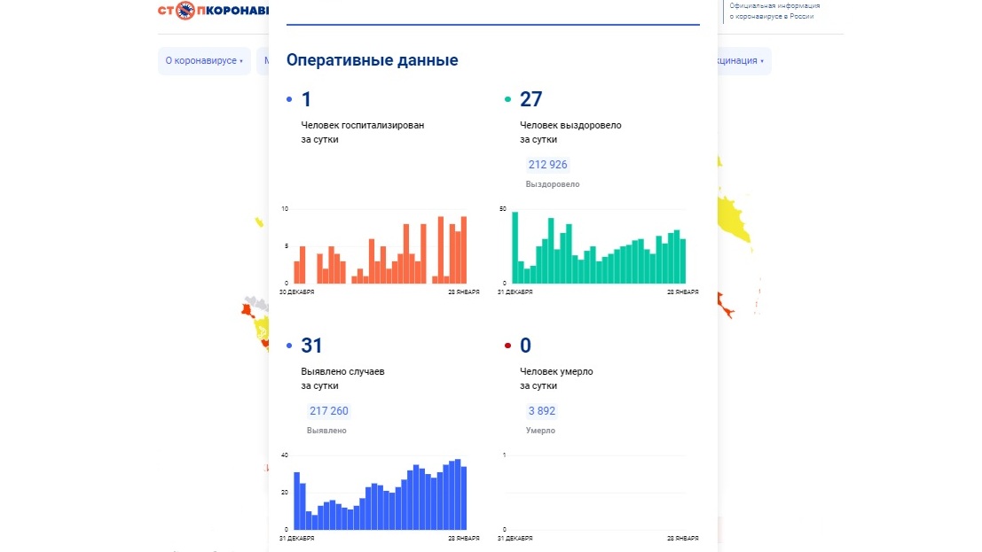 За минувшие сутки выявлено 27 новых заболевших коронавирусом, один из которых попал в больницу, 31 вологжанин вылечился, никто не умер. Такие данные на 29 января приводит портал «стопкоронавирус.рф».