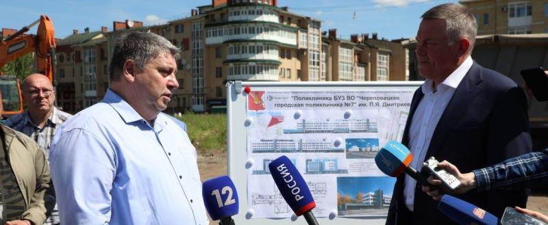 В Череповце на строительной площадке будущей поликлиники сегодня побывал губернатор Вологодчины Олег Кувшинников. Глава региона дал старт началу строительства нового медучреждения.