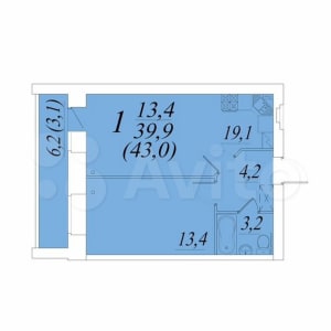 - Общая площадь: 43 м²